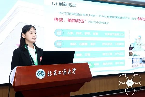 參賽作品“花寄語提神凝露”是由黃山學院健康食品與功能護膚品創(chuàng)新技術研發(fā)中心、黃山市新安醫(yī)學創(chuàng)新研究中心和黃山荷琇生物科技有限公司校企政三方共建的“大學生聯(lián)合創(chuàng)新實踐基地”研發(fā),將新安醫(yī)學“君臣佐使、植物配伍”的傳統(tǒng)中醫(yī)藥理論與現(xiàn)代科學配方相結合,從疲勞產生的機理出發(fā),創(chuàng)新了一種中藥發(fā)酵組合物,以深層次的解決人體疲勞問題,該技術已授權國家發(fā)明專利“中藥發(fā)酵組合物、提神醒腦凝露及其制備方法(ZL 202111447935.0)”。該產品還曾獲得中國旅游協(xié)會舉辦的中國旅游特色商品大賽銅獎。
